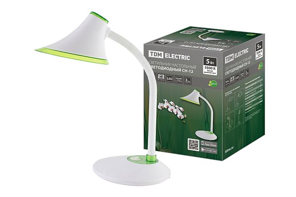 К светотехнике на любом объекте, будь то жилое помещение или коммерческая площадка, предъявляют высокие требования. Необходимо не только продумать конфигурацию всех приборов, безопасную схему подключения, суммарную мощность и нагрузку на сеть, но и учесть требования дизайна, поскольку эстетике сегодня уделяется большое внимание. Светильник светодиодный настольный СН-12, 5 Вт, гибкий, выключатель, 5500 К, зеленый, 220 В, TDM (SQ0337-0092) — современное решение, в котором учтены все требования. За надежность отвечают материалы с большим запасом прочности. Все элементы конструкции без проблем выдерживают интенсивную эксплуатацию. Такой вдумчивый подход к деталям является визитной карточкой бренда TDM.