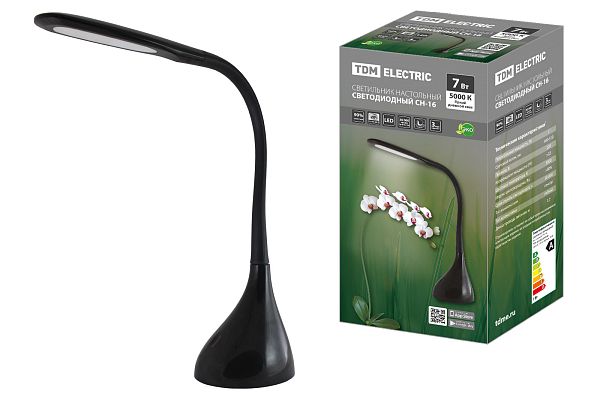 К светотехнике на любом объекте, будь то жилое помещение или коммерческая площадка, предъявляют высокие требования. Необходимо не только продумать конфигурацию всех приборов, безопасную схему подключения, суммарную мощность и нагрузку на сеть, но и учесть требования дизайна, поскольку эстетике сегодня уделяется большое внимание. Светильник светодиодный настольный СН-16, 7 Вт, сенсор-диммер, 5000 К, 220 В, черный, TDM (SQ0337-0093) — современное решение, в котором учтены все требования. За надежность отвечают материалы с большим запасом прочности. Все элементы конструкции без проблем выдерживают интенсивную эксплуатацию. Такой вдумчивый подход к деталям является визитной карточкой бренда TDM.