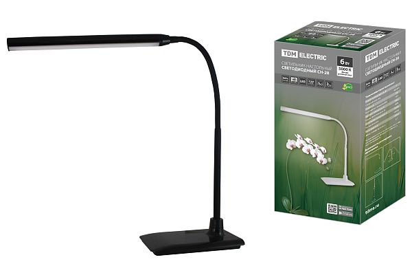 К светотехнике на любом объекте, будь то жилое помещение или коммерческая площадка, предъявляют высокие требования. Необходимо не только продумать конфигурацию всех приборов, безопасную схему подключения, суммарную мощность и нагрузку на сеть, но и учесть требования дизайна, поскольку эстетике сегодня уделяется большое внимание. Светильник светодиодный настольный СН-28, 6 Вт, сенсор-диммер, 5000 К, 220 В, черный, TDM (SQ0337-0095) — современное решение, в котором учтены все требования. За надежность отвечают материалы с большим запасом прочности. Все элементы конструкции без проблем выдерживают интенсивную эксплуатацию. Такой вдумчивый подход к деталям является визитной карточкой бренда TDM.