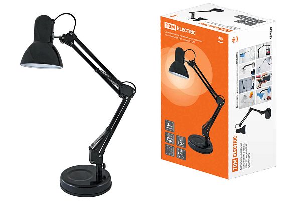 К светотехнике на любом объекте, будь то жилое помещение или коммерческая площадка, предъявляют высокие требования. Необходимо не только продумать конфигурацию всех приборов, безопасную схему подключения, суммарную мощность и нагрузку на сеть, но и учесть требования дизайна, поскольку эстетике сегодня уделяется большое внимание. Светильник настольный на основании 2 колена 60Вт, E27 черный TDM (SQ0337-0110) — современное решение, в котором учтены все требования. За надежность отвечают материалы с большим запасом прочности. Все элементы конструкции без проблем выдерживают интенсивную эксплуатацию. Такой вдумчивый подход к деталям является визитной карточкой бренда TDM.