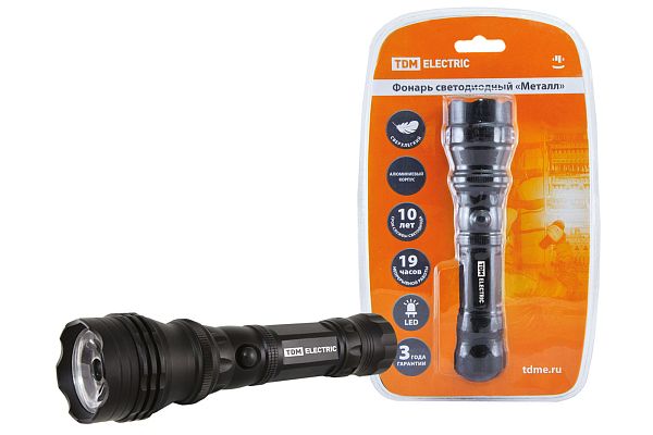 К светотехнике на любом объекте, будь то жилое помещение или коммерческая площадка, предъявляют высокие требования. Необходимо не только продумать конфигурацию всех приборов, безопасную схему подключения, суммарную мощность и нагрузку на сеть, но и учесть требования дизайна, поскольку эстетике сегодня уделяется большое внимание. Фонарь светодиодный "Металл", 3 Вт светодиод 120 лм/Вт, бат. 3*AAA TDM (SQ0350-0011) — современное решение, в котором учтены все требования. За надежность отвечают материалы с большим запасом прочности. Все элементы конструкции без проблем выдерживают интенсивную эксплуатацию. Такой вдумчивый подход к деталям является визитной карточкой бренда TDM.