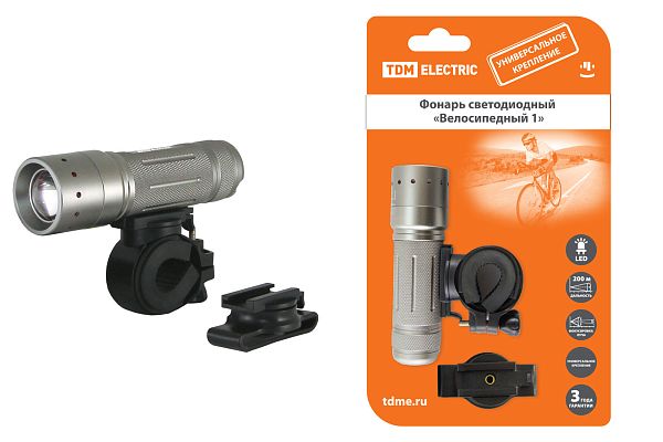 К светотехнике на любом объекте, будь то жилое помещение или коммерческая площадка, предъявляют высокие требования. Необходимо не только продумать конфигурацию всех приборов, безопасную схему подключения, суммарную мощность и нагрузку на сеть, но и учесть требования дизайна, поскольку эстетике сегодня уделяется большое внимание. Фонарь светодиодный "Велосипедный 1" с креплениями, IP54, 1 LED 5 Вт (CREE), 36 лм/Вт, 3*AAA TDM (SQ0350-0027) — современное решение, в котором учтены все требования. За надежность отвечают материалы с большим запасом прочности. Все элементы конструкции без проблем выдерживают интенсивную эксплуатацию. Такой вдумчивый подход к деталям является визитной карточкой бренда TDM.