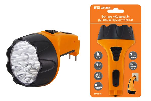К светотехнике на любом объекте, будь то жилое помещение или коммерческая площадка, предъявляют высокие требования. Необходимо не только продумать конфигурацию всех приборов, безопасную схему подключения, суммарную мощность и нагрузку на сеть, но и учесть требования дизайна, поскольку эстетике сегодня уделяется большое внимание. Фонарь «Комета 3» ручной аккумуляторный, 15 светодиодов, 1,1Ач 230В вилка, TDM (SQ0350-0041) — современное решение, в котором учтены все требования. За надежность отвечают материалы с большим запасом прочности. Все элементы конструкции без проблем выдерживают интенсивную эксплуатацию. Такой вдумчивый подход к деталям является визитной карточкой бренда TDM.