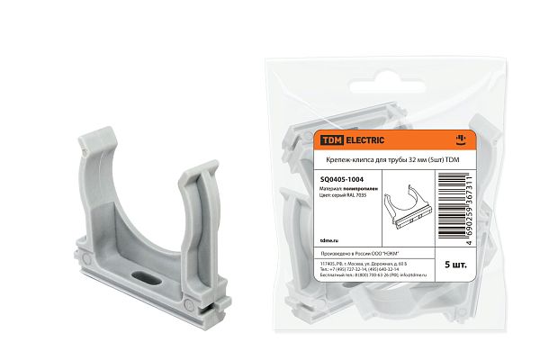 Электротехническая инфраструктура на объекте может иметь разную конфигурацию, в том числе довольно сложную со множеством подключенных потребителей, однако строгие требования к безопасности неизменны. Они прописаны в отраслевых стандартах и другой нормативной документации. И зависит итоговый результат непосредственно от качества электромонтажа и используемых комплектующих. Крепеж-клипса для трубы 32 мм (5шт) TDM (SQ0405-1004) — небольшая, но очень важная деталь, которая тоже отвечает за корректную работу оборудования. Устанавливается довольно просто, но с эксплуатационными нагрузками при этом справляется на отлично. Качество гарантировано многоступенчатым контролем на заводе TDM. При заказе уточните артикул SQ0405-1004 и количество позиций.