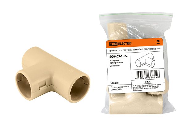 Электротехническая инфраструктура на объекте может иметь разную конфигурацию, в том числе довольно сложную со множеством подключенных потребителей, однако строгие требования к безопасности неизменны. Они прописаны в отраслевых стандартах и другой нормативной документации. И зависит итоговый результат непосредственно от качества электромонтажа и используемых комплектующих. Тройник соед. для трубы 20 мм (5шт) "ЭКО" (сосна) TDM (SQ0405-1522) — небольшая, но очень важная деталь, которая тоже отвечает за корректную работу оборудования. Устанавливается довольно просто, но с эксплуатационными нагрузками при этом справляется на отлично. Качество гарантировано многоступенчатым контролем на заводе TDM. При заказе уточните артикул SQ0405-1522 и количество позиций.