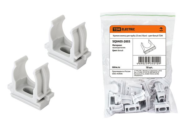 Электротехническая инфраструктура на объекте может иметь разную конфигурацию, в том числе довольно сложную со множеством подключенных потребителей, однако строгие требования к безопасности неизменны. Они прописаны в отраслевых стандартах и другой нормативной документации. И зависит итоговый результат непосредственно от качества электромонтажа и используемых комплектующих. Крепеж-клипса для трубы 25 мм (10шт) - цвет белый TDM (SQ0405-2003) — небольшая, но очень важная деталь, которая тоже отвечает за корректную работу оборудования. Устанавливается довольно просто, но с эксплуатационными нагрузками при этом справляется на отлично. Качество гарантировано многоступенчатым контролем на заводе TDM. При заказе уточните артикул SQ0405-2003 и количество позиций.