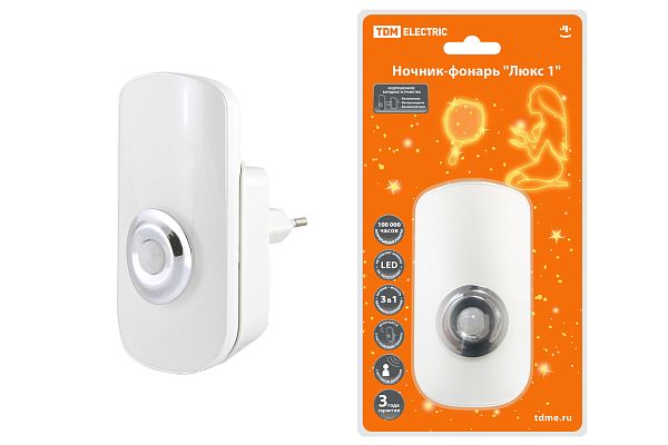 К светотехнике на любом объекте, будь то жилое помещение или коммерческая площадка, предъявляют высокие требования. Необходимо не только продумать конфигурацию всех приборов, безопасную схему подключения, суммарную мощность и нагрузку на сеть, но и учесть требования дизайна, поскольку эстетике сегодня уделяется большое внимание. Ночник-фонарь "Люкс 1", 1х0,5 Вт + 9LED, 70 лм/Вт, Li-Ion 500 мАч, дат. освещ. и движ., 220 В, TDM (SQ0357-0024) — современное решение, в котором учтены все требования. За надежность отвечают материалы с большим запасом прочности. Все элементы конструкции без проблем выдерживают интенсивную эксплуатацию. Такой вдумчивый подход к деталям является визитной карточкой бренда TDM.