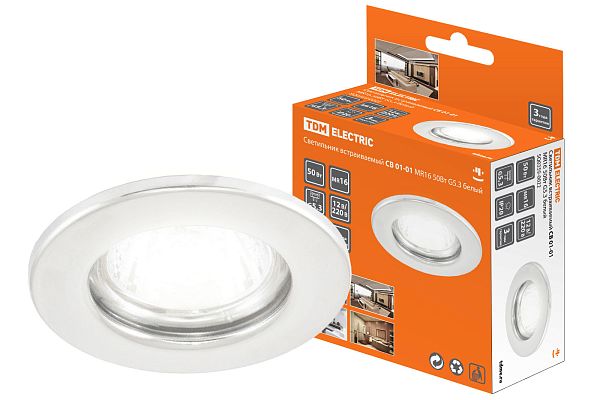 К светотехнике на любом объекте, будь то жилое помещение или коммерческая площадка, предъявляют высокие требования. Необходимо не только продумать конфигурацию всех приборов, безопасную схему подключения, суммарную мощность и нагрузку на сеть, но и учесть требования дизайна, поскольку эстетике сегодня уделяется большое внимание. Светильник встраиваемый СВ 01-01 MR16 50Вт G5.3 белый TDM (SQ0359-0022) — современное решение, в котором учтены все требования. За надежность отвечают материалы с большим запасом прочности. Все элементы конструкции без проблем выдерживают интенсивную эксплуатацию. Такой вдумчивый подход к деталям является визитной карточкой бренда TDM.