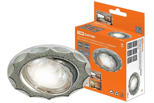 К светотехнике на любом объекте, будь то жилое помещение или коммерческая площадка, предъявляют высокие требования. Необходимо не только продумать конфигурацию всех приборов, безопасную схему подключения, суммарную мощность и нагрузку на сеть, но и учесть требования дизайна, поскольку эстетике сегодня уделяется большое внимание. Светильник встраиваемый поворотный СВ 02-07 MR16 50Вт G5.3 серебряный блеск/хром TDM (SQ0359-0039) — современное решение, в котором учтены все требования. За надежность отвечают материалы с большим запасом прочности. Все элементы конструкции без проблем выдерживают интенсивную эксплуатацию. Такой вдумчивый подход к деталям является визитной карточкой бренда TDM.