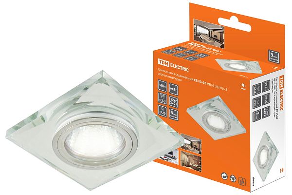 К светотехнике на любом объекте, будь то жилое помещение или коммерческая площадка, предъявляют высокие требования. Необходимо не только продумать конфигурацию всех приборов, безопасную схему подключения, суммарную мощность и нагрузку на сеть, но и учесть требования дизайна, поскольку эстетике сегодня уделяется большое внимание. Светильник встраиваемый СВ 03-02 MR16 50Вт G5.3 зеркальный/хром TDM (SQ0359-0046) — современное решение, в котором учтены все требования. За надежность отвечают материалы с большим запасом прочности. Все элементы конструкции без проблем выдерживают интенсивную эксплуатацию. Такой вдумчивый подход к деталям является визитной карточкой бренда TDM.
