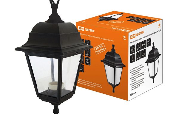 К светотехнике на любом объекте, будь то жилое помещение или коммерческая площадка, предъявляют высокие требования. Необходимо не только продумать конфигурацию всех приборов, безопасную схему подключения, суммарную мощность и нагрузку на сеть, но и учесть требования дизайна, поскольку эстетике сегодня уделяется большое внимание. Светильник садово-парковый НСУ 04-60-001 четырехгранник, подвес, пластик, черный TDM (SQ0330-0706) — современное решение, в котором учтены все требования. За надежность отвечают материалы с большим запасом прочности. Все элементы конструкции без проблем выдерживают интенсивную эксплуатацию. Такой вдумчивый подход к деталям является визитной карточкой бренда TDM.