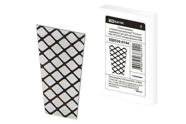 К светотехнике на любом объекте, будь то жилое помещение или коммерческая площадка, предъявляют высокие требования. Необходимо не только продумать конфигурацию всех приборов, безопасную схему подключения, суммарную мощность и нагрузку на сеть, но и учесть требования дизайна, поскольку эстетике сегодня уделяется большое внимание. Стекло матовое "Решетка" (комплект 4 шт.) для светильников НБУ, НТУ, НСУ четырехгранник TDM (SQ0330-0744) — современное решение, в котором учтены все требования. За надежность отвечают материалы с большим запасом прочности. Все элементы конструкции без проблем выдерживают интенсивную эксплуатацию. Такой вдумчивый подход к деталям является визитной карточкой бренда TDM.