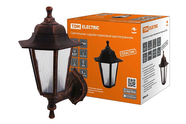 К светотехнике на любом объекте, будь то жилое помещение или коммерческая площадка, предъявляют высокие требования. Необходимо не только продумать конфигурацию всех приборов, безопасную схему подключения, суммарную мощность и нагрузку на сеть, но и учесть требования дизайна, поскольку эстетике сегодня уделяется большое внимание. Светильник садово-парковый НБУ 06-60-001 шестигр., настенный, пластик, расс.пластик, медь TDM (SQ0330-0781) — современное решение, в котором учтены все требования. За надежность отвечают материалы с большим запасом прочности. Все элементы конструкции без проблем выдерживают интенсивную эксплуатацию. Такой вдумчивый подход к деталям является визитной карточкой бренда TDM.