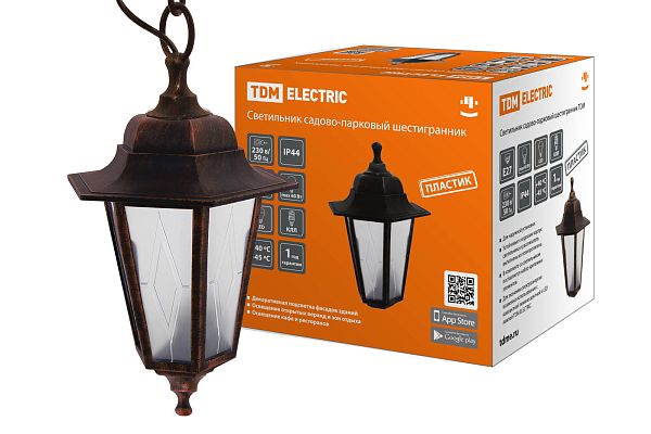 К светотехнике на любом объекте, будь то жилое помещение или коммерческая площадка, предъявляют высокие требования. Необходимо не только продумать конфигурацию всех приборов, безопасную схему подключения, суммарную мощность и нагрузку на сеть, но и учесть требования дизайна, поскольку эстетике сегодня уделяется большое внимание. Светильник садово-парковый НСУ 06-60-001 шестигр., подвес, пластик, расс.пластик, медь TDM (SQ0330-0783) — современное решение, в котором учтены все требования. За надежность отвечают материалы с большим запасом прочности. Все элементы конструкции без проблем выдерживают интенсивную эксплуатацию. Такой вдумчивый подход к деталям является визитной карточкой бренда TDM.