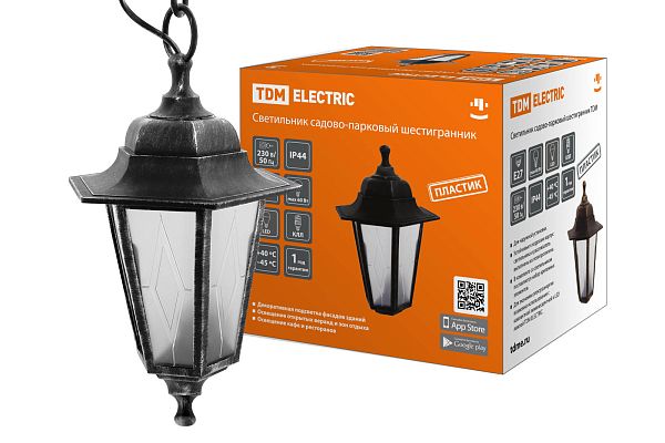 К светотехнике на любом объекте, будь то жилое помещение или коммерческая площадка, предъявляют высокие требования. Необходимо не только продумать конфигурацию всех приборов, безопасную схему подключения, суммарную мощность и нагрузку на сеть, но и учесть требования дизайна, поскольку эстетике сегодня уделяется большое внимание. Светильник садово-парковый НСУ 06-60-001 шестигр., подвес, пластик, расс.пластик, серебро TDM (SQ0330-0793) — современное решение, в котором учтены все требования. За надежность отвечают материалы с большим запасом прочности. Все элементы конструкции без проблем выдерживают интенсивную эксплуатацию. Такой вдумчивый подход к деталям является визитной карточкой бренда TDM.