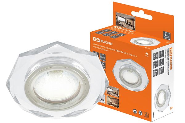 К светотехнике на любом объекте, будь то жилое помещение или коммерческая площадка, предъявляют высокие требования. Необходимо не только продумать конфигурацию всех приборов, безопасную схему подключения, суммарную мощность и нагрузку на сеть, но и учесть требования дизайна, поскольку эстетике сегодня уделяется большое внимание. Светильник встраиваемый СВ 03-04 MR16 50Вт G5.3 зеркальный/хром TDM (SQ0359-0052) — современное решение, в котором учтены все требования. За надежность отвечают материалы с большим запасом прочности. Все элементы конструкции без проблем выдерживают интенсивную эксплуатацию. Такой вдумчивый подход к деталям является визитной карточкой бренда TDM.
