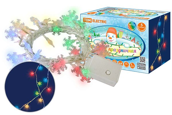 К светотехнике на любом объекте, будь то жилое помещение или коммерческая площадка, предъявляют высокие требования. Необходимо не только продумать конфигурацию всех приборов, безопасную схему подключения, суммарную мощность и нагрузку на сеть, но и учесть требования дизайна, поскольку эстетике сегодня уделяется большое внимание. Гирлянда светодиодная "Снежинки" 50LED, 5м, 8 режимов, многоцвет., прозр. шнур, 250 В, TDM (SQ0361-0047) — современное решение, в котором учтены все требования. За надежность отвечают материалы с большим запасом прочности. Все элементы конструкции без проблем выдерживают интенсивную эксплуатацию. Такой вдумчивый подход к деталям является визитной карточкой бренда TDM.