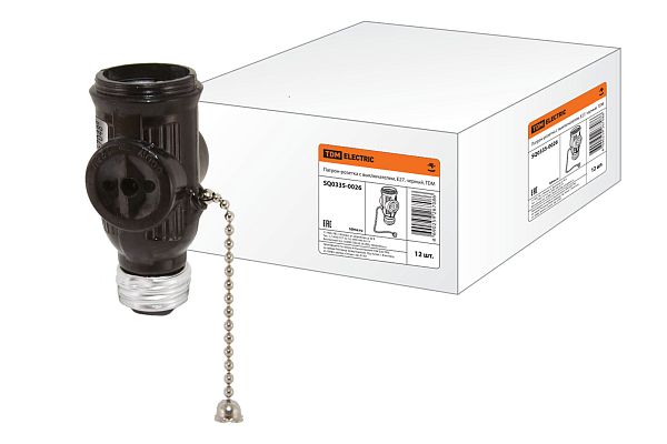 К светотехнике на любом объекте, будь то жилое помещение или коммерческая площадка, предъявляют высокие требования. Необходимо не только продумать конфигурацию всех приборов, безопасную схему подключения, суммарную мощность и нагрузку на сеть, но и учесть требования дизайна, поскольку эстетике сегодня уделяется большое внимание. Патрон-розетка карболитовый с выключателем, Е27, черный, TDM (SQ0335-0026) — современное решение, в котором учтены все требования. За надежность отвечают материалы с большим запасом прочности. Все элементы конструкции без проблем выдерживают интенсивную эксплуатацию. Такой вдумчивый подход к деталям является визитной карточкой бренда TDM.