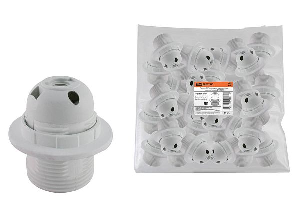 К светотехнике на любом объекте, будь то жилое помещение или коммерческая площадка, предъявляют высокие требования. Необходимо не только продумать конфигурацию всех приборов, безопасную схему подключения, суммарную мощность и нагрузку на сеть, но и учесть требования дизайна, поскольку эстетике сегодня уделяется большое внимание. Патрон Е27 с кольцом, термостойкий пластик, белый, Б/Н TDM (SQ0335-0031) — современное решение, в котором учтены все требования. За надежность отвечают материалы с большим запасом прочности. Все элементы конструкции без проблем выдерживают интенсивную эксплуатацию. Такой вдумчивый подход к деталям является визитной карточкой бренда TDM.