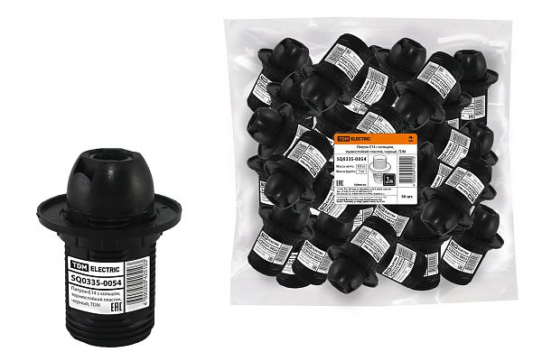 К светотехнике на любом объекте, будь то жилое помещение или коммерческая площадка, предъявляют высокие требования. Необходимо не только продумать конфигурацию всех приборов, безопасную схему подключения, суммарную мощность и нагрузку на сеть, но и учесть требования дизайна, поскольку эстетике сегодня уделяется большое внимание. Патрон Е14 с кольцом, термостойкий пластик, черный, TDM (SQ0335-0054) — современное решение, в котором учтены все требования. За надежность отвечают материалы с большим запасом прочности. Все элементы конструкции без проблем выдерживают интенсивную эксплуатацию. Такой вдумчивый подход к деталям является визитной карточкой бренда TDM.