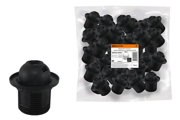 К светотехнике на любом объекте, будь то жилое помещение или коммерческая площадка, предъявляют высокие требования. Необходимо не только продумать конфигурацию всех приборов, безопасную схему подключения, суммарную мощность и нагрузку на сеть, но и учесть требования дизайна, поскольку эстетике сегодня уделяется большое внимание. Патрон Е27 с кольцом, термостойкий пластик, черный, Б/Н TDM (SQ0335-0056) — современное решение, в котором учтены все требования. За надежность отвечают материалы с большим запасом прочности. Все элементы конструкции без проблем выдерживают интенсивную эксплуатацию. Такой вдумчивый подход к деталям является визитной карточкой бренда TDM.