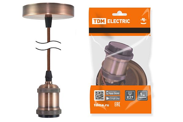 К светотехнике на любом объекте, будь то жилое помещение или коммерческая площадка, предъявляют высокие требования. Необходимо не только продумать конфигурацию всех приборов, безопасную схему подключения, суммарную мощность и нагрузку на сеть, но и учесть требования дизайна, поскольку эстетике сегодня уделяется большое внимание. Патрон Е27 с подвесом 1 м, металлический "Лофт", медь TDM (SQ0335-0072) — современное решение, в котором учтены все требования. За надежность отвечают материалы с большим запасом прочности. Все элементы конструкции без проблем выдерживают интенсивную эксплуатацию. Такой вдумчивый подход к деталям является визитной карточкой бренда TDM.