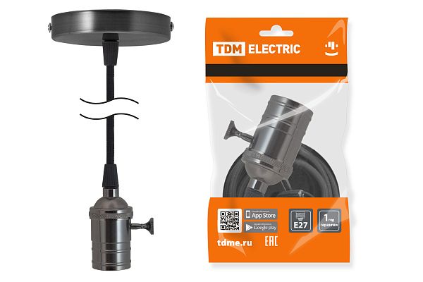 К светотехнике на любом объекте, будь то жилое помещение или коммерческая площадка, предъявляют высокие требования. Необходимо не только продумать конфигурацию всех приборов, безопасную схему подключения, суммарную мощность и нагрузку на сеть, но и учесть требования дизайна, поскольку эстетике сегодня уделяется большое внимание. Патрон Е27 с выключателем с подвесом 1 м, металлический "Лофт", черный TDM (SQ0335-0073) — современное решение, в котором учтены все требования. За надежность отвечают материалы с большим запасом прочности. Все элементы конструкции без проблем выдерживают интенсивную эксплуатацию. Такой вдумчивый подход к деталям является визитной карточкой бренда TDM.