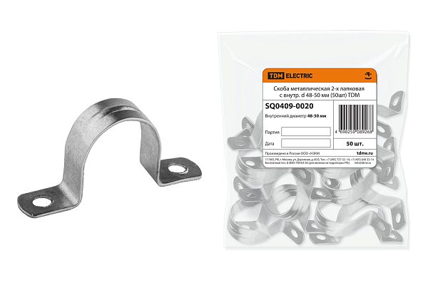 Электротехническая инфраструктура на объекте может иметь разную конфигурацию, в том числе довольно сложную со множеством подключенных потребителей, однако строгие требования к безопасности неизменны. Они прописаны в отраслевых стандартах и другой нормативной документации. И зависит итоговый результат непосредственно от качества электромонтажа и используемых комплектующих. Скоба металлическая 2-х лапковая с внутр. d 48-50 мм (50шт) TDM (SQ0409-0020) — небольшая, но очень важная деталь, которая тоже отвечает за корректную работу оборудования. Устанавливается довольно просто, но с эксплуатационными нагрузками при этом справляется на отлично. Качество гарантировано многоступенчатым контролем на заводе TDM. При заказе уточните артикул SQ0409-0020 и количество позиций.