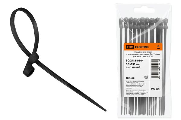 Электротехническая инфраструктура на объекте может иметь разную конфигурацию, в том числе довольно сложную со множеством подключенных потребителей, однако строгие требования к безопасности неизменны. Они прописаны в отраслевых стандартах и другой нормативной документации. И зависит итоговый результат непосредственно от качества электромонтажа и используемых комплектующих. Хомут нейлоновый с монтажным отверстием 3,6х150 мм (черный) (100шт) TDM (SQ0515-0504) — небольшая, но очень важная деталь, которая тоже отвечает за корректную работу оборудования. Устанавливается довольно просто, но с эксплуатационными нагрузками при этом справляется на отлично. Качество гарантировано многоступенчатым контролем на заводе TDM. При заказе уточните артикул SQ0515-0504 и количество позиций.