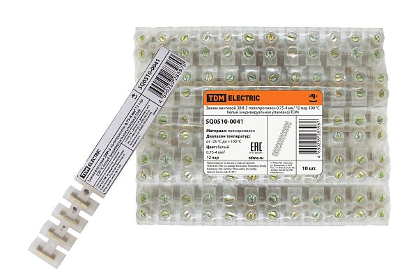 Электротехническая инфраструктура на объекте может иметь разную конфигурацию, в том числе довольно сложную со множеством подключенных потребителей, однако строгие требования к безопасности неизменны. Они прописаны в отраслевых стандартах и другой нормативной документации. И зависит итоговый результат непосредственно от качества электромонтажа и используемых комплектующих. Зажим винтовой ЗВИ-5 полипропилен 0,75-4мм2 12пар 100°С белый (индивидуальная упаковка) TDM (SQ0510-0041) — небольшая, но очень важная деталь, которая тоже отвечает за корректную работу оборудования. Устанавливается довольно просто, но с эксплуатационными нагрузками при этом справляется на отлично. Качество гарантировано многоступенчатым контролем на заводе TDM. При заказе уточните артикул SQ0510-0041 и количество позиций.