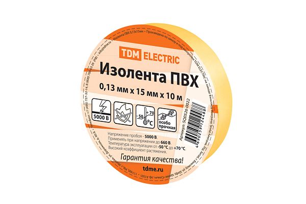 Электротехническая инфраструктура на объекте может иметь разную конфигурацию, в том числе довольно сложную со множеством подключенных потребителей, однако строгие требования к безопасности неизменны. Они прописаны в отраслевых стандартах и другой нормативной документации. И зависит итоговый результат непосредственно от качества электромонтажа и используемых комплектующих. Изолента ПВХ 0,13*15мм Желтая 10м TDM (SQ0526-0022) — небольшая, но очень важная деталь, которая тоже отвечает за корректную работу оборудования. Устанавливается довольно просто, но с эксплуатационными нагрузками при этом справляется на отлично. Качество гарантировано многоступенчатым контролем на заводе TDM. При заказе уточните артикул SQ0526-0022 и количество позиций.