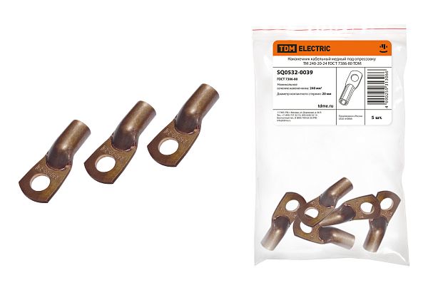 Электротехническая инфраструктура на объекте может иметь разную конфигурацию, в том числе довольно сложную со множеством подключенных потребителей, однако строгие требования к безопасности неизменны. Они прописаны в отраслевых стандартах и другой нормативной документации. И зависит итоговый результат непосредственно от качества электромонтажа и используемых комплектующих. Наконечник ТМ 240-20-24 TDM (SQ0532-0039) — небольшая, но очень важная деталь, которая тоже отвечает за корректную работу оборудования. Устанавливается довольно просто, но с эксплуатационными нагрузками при этом справляется на отлично. Качество гарантировано многоступенчатым контролем на заводе TDM. При заказе уточните артикул SQ0532-0039 и количество позиций.