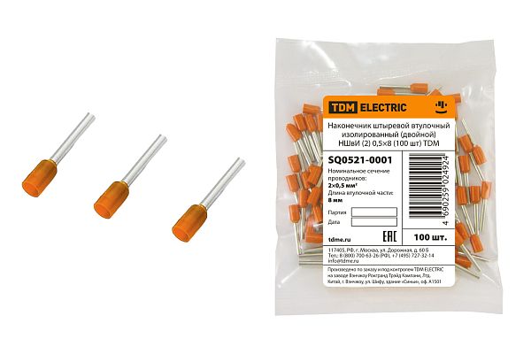 Электротехническая инфраструктура на объекте может иметь разную конфигурацию, в том числе довольно сложную со множеством подключенных потребителей, однако строгие требования к безопасности неизменны. Они прописаны в отраслевых стандартах и другой нормативной документации. И зависит итоговый результат непосредственно от качества электромонтажа и используемых комплектующих. Наконечник штыревой втулочный изолированный (двойной) НШвИ (2) 0,5×8 (100 шт) TDM (SQ0521-0001) — небольшая, но очень важная деталь, которая тоже отвечает за корректную работу оборудования. Устанавливается довольно просто, но с эксплуатационными нагрузками при этом справляется на отлично. Качество гарантировано многоступенчатым контролем на заводе TDM. При заказе уточните артикул SQ0521-0001 и количество позиций.