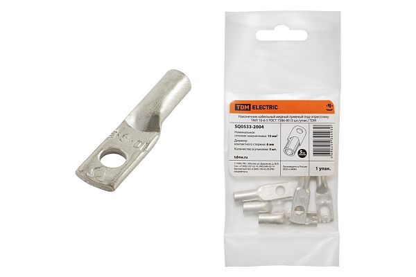 Электротехническая инфраструктура на объекте может иметь разную конфигурацию, в том числе довольно сложную со множеством подключенных потребителей, однако строгие требования к безопасности неизменны. Они прописаны в отраслевых стандартах и другой нормативной документации. И зависит итоговый результат непосредственно от качества электромонтажа и используемых комплектующих. Наконечник медный луженый ТМЛ 10-6-5 ГОСТ 7386-80 (5 шт./упак.) TDM (SQ0533-2004) — небольшая, но очень важная деталь, которая тоже отвечает за корректную работу оборудования. Устанавливается довольно просто, но с эксплуатационными нагрузками при этом справляется на отлично. Качество гарантировано многоступенчатым контролем на заводе TDM. При заказе уточните артикул SQ0533-2004 и количество позиций.