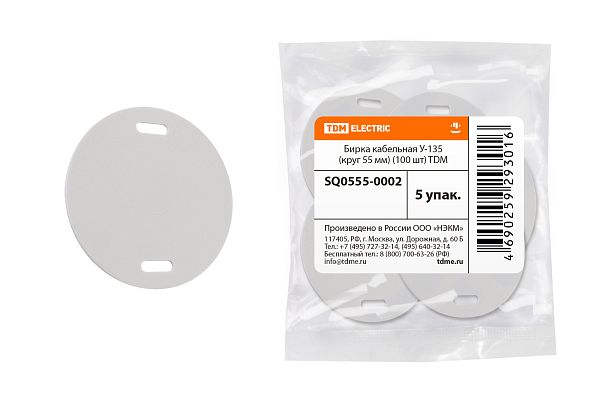 Электротехническая инфраструктура на объекте может иметь разную конфигурацию, в том числе довольно сложную со множеством подключенных потребителей, однако строгие требования к безопасности неизменны. Они прописаны в отраслевых стандартах и другой нормативной документации. И зависит итоговый результат непосредственно от качества электромонтажа и используемых комплектующих. Бирка кабельная У-135 (круг 55 мм) (100 шт) TDM (SQ0555-0002) — небольшая, но очень важная деталь, которая тоже отвечает за корректную работу оборудования. Устанавливается довольно просто, но с эксплуатационными нагрузками при этом справляется на отлично. Качество гарантировано многоступенчатым контролем на заводе TDM. При заказе уточните артикул SQ0555-0002 и количество позиций.