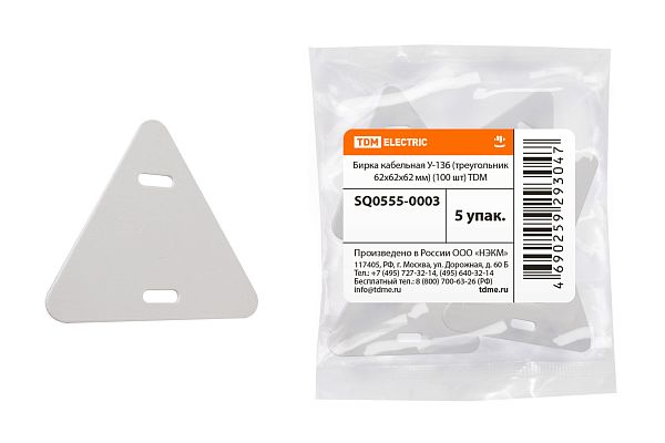 Электротехническая инфраструктура на объекте может иметь разную конфигурацию, в том числе довольно сложную со множеством подключенных потребителей, однако строгие требования к безопасности неизменны. Они прописаны в отраслевых стандартах и другой нормативной документации. И зависит итоговый результат непосредственно от качества электромонтажа и используемых комплектующих. Бирка кабельная У-136 (треугольник 62х62х62 мм) (100 шт) TDM (SQ0555-0003) — небольшая, но очень важная деталь, которая тоже отвечает за корректную работу оборудования. Устанавливается довольно просто, но с эксплуатационными нагрузками при этом справляется на отлично. Качество гарантировано многоступенчатым контролем на заводе TDM. При заказе уточните артикул SQ0555-0003 и количество позиций.