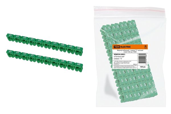 При прокладке электропроводки, подключении потребителей, встраивании в электрические цепи устройств безопасности и других приборов для эффективной коммутации важна прежде всего безопасность. Маркер наборный - символ "5" зеленый 6 мм2 (100 шт.) TDM (SQ0534-0051) — часть системы защиты и залог бесперебойной работы электрооборудования. Товар рассчитан на большие эксплуатационные нагрузки и соответствует строгим отраслевым стандартам в плане надежности. Мы не завышаем цену на него, поскольку являемся официальным дистрибьютором TDM, и можем быстро укомплектовать заказ на количество позиций.