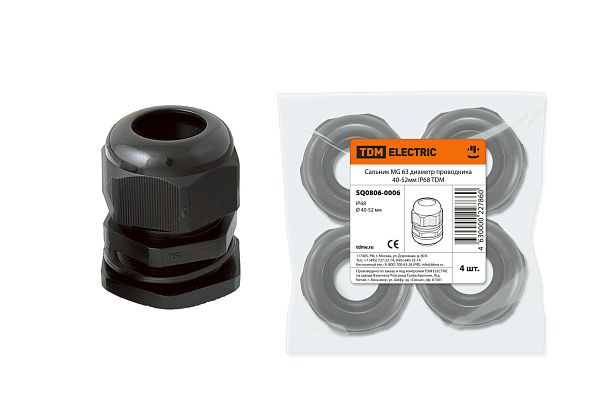 При прокладке электропроводки, подключении потребителей, встраивании в электрические цепи устройств безопасности и других приборов для эффективной коммутации важна прежде всего безопасность. Сальник MG 63 диаметр проводника 40-52мм IP68 TDM (SQ0806-0006) — часть системы защиты и залог бесперебойной работы электрооборудования. Товар рассчитан на большие эксплуатационные нагрузки и соответствует строгим отраслевым стандартам в плане надежности. Мы не завышаем цену на него, поскольку являемся официальным дистрибьютором TDM, и можем быстро укомплектовать заказ на количество позиций.