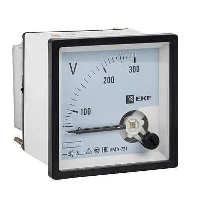 Вольтметр VMA-721 аналоговый на панель (72х72) квадратный вырез 300В прямое подкл. EKF PROxima (vma-721-300) — современное решение для контроля нагрузки в сети, предотвращения перегрузок и других аварийных ситуаций, способных повлиять на подключенных потребителей. Такое низковольтное оборудование рассчитано на работу при номинальном напряжении до 1000 вольт. Производитель EKF давно представлен на электротехническом рынке, его устройства функционируют на объектах самого разного назначения, их рекомендуют профессиональные электрики благодаря высокой надежности, безотказности и безопасности. Подтвердите заказ на любое количество артикула vma-721-300, и мы оперативно отправим его по России.