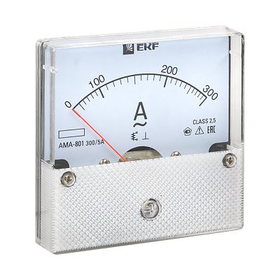 Амперметр AMA-801 аналоговый на панель (80х80) круглый вырез 300А трансф. подкл. EKF (ama-801-300) — современное решение для контроля нагрузки в сети, предотвращения перегрузок и других аварийных ситуаций, способных повлиять на подключенных потребителей. Такое низковольтное оборудование рассчитано на работу при номинальном напряжении до 1000 вольт. Производитель EKF давно представлен на электротехническом рынке, его устройства функционируют на объектах самого разного назначения, их рекомендуют профессиональные электрики благодаря высокой надежности, безотказности и безопасности. Подтвердите заказ на любое количество артикула ama-801-300, и мы оперативно отправим его по России.