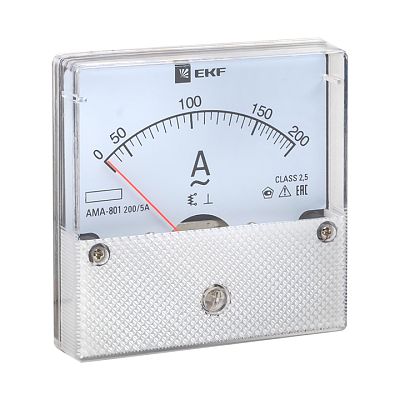 Амперметр AMA-801 аналоговый на панель (80х80) круглый вырез 200А трансф. подкл. EKF (ama-801-200) — современное решение для контроля нагрузки в сети, предотвращения перегрузок и других аварийных ситуаций, способных повлиять на подключенных потребителей. Такое низковольтное оборудование рассчитано на работу при номинальном напряжении до 1000 вольт. Производитель EKF давно представлен на электротехническом рынке, его устройства функционируют на объектах самого разного назначения, их рекомендуют профессиональные электрики благодаря высокой надежности, безотказности и безопасности. Подтвердите заказ на любое количество артикула ama-801-200, и мы оперативно отправим его по России.