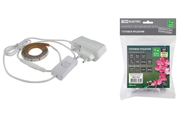К светотехнике на любом объекте, будь то жилое помещение или коммерческая площадка, предъявляют высокие требования. Необходимо не только продумать конфигурацию всех приборов, безопасную схему подключения, суммарную мощность и нагрузку на сеть, но и учесть требования дизайна, поскольку эстетике сегодня уделяется большое внимание. Комплект светодиодной ленты SMD2835-60 LED/м-12 В-4,8 Вт/м-IP20-3000 К (1 м), 6 Вт TDM (SQ0331-0222) — современное решение, в котором учтены все требования. За надежность отвечают материалы с большим запасом прочности. Все элементы конструкции без проблем выдерживают интенсивную эксплуатацию. Такой вдумчивый подход к деталям является визитной карточкой бренда TDM.