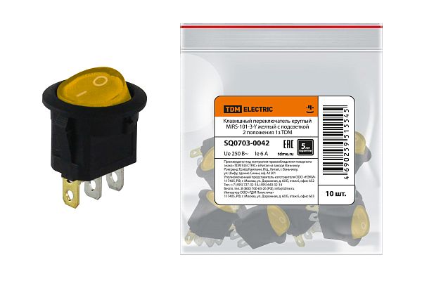 Клавишный переключатель круглый MIRS-101-3-Y желтый с подсветкой 2 положения 1з TDM (SQ0703-0042) — современное решение для контроля нагрузки в сети, предотвращения перегрузок и других аварийных ситуаций, способных повлиять на подключенных потребителей. Такое низковольтное оборудование рассчитано на работу при номинальном напряжении до 1000 вольт. Производитель TDM давно представлен на электротехническом рынке, его устройства функционируют на объектах самого разного назначения, их рекомендуют профессиональные электрики благодаря высокой надежности, безотказности и безопасности. Подтвердите заказ на любое количество артикула SQ0703-0042, и мы оперативно отправим его по России.