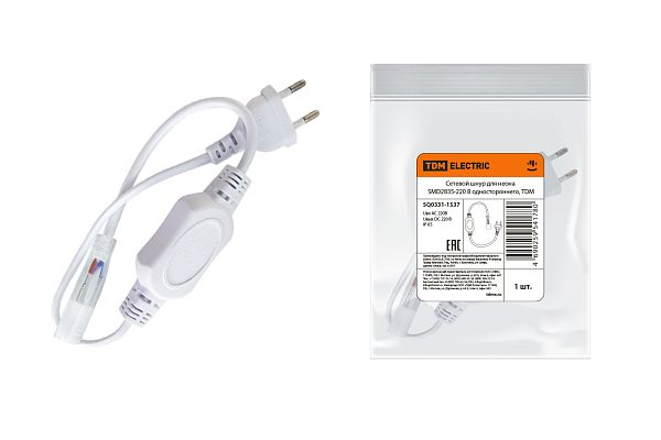 К светотехнике на любом объекте, будь то жилое помещение или коммерческая площадка, предъявляют высокие требования. Необходимо не только продумать конфигурацию всех приборов, безопасную схему подключения, суммарную мощность и нагрузку на сеть, но и учесть требования дизайна, поскольку эстетике сегодня уделяется большое внимание. Сетевой шнур для неона SMD2835-220 В одностороннего, TDM (SQ0331-1537) — современное решение, в котором учтены все требования. За надежность отвечают материалы с большим запасом прочности. Все элементы конструкции без проблем выдерживают интенсивную эксплуатацию. Такой вдумчивый подход к деталям является визитной карточкой бренда TDM.