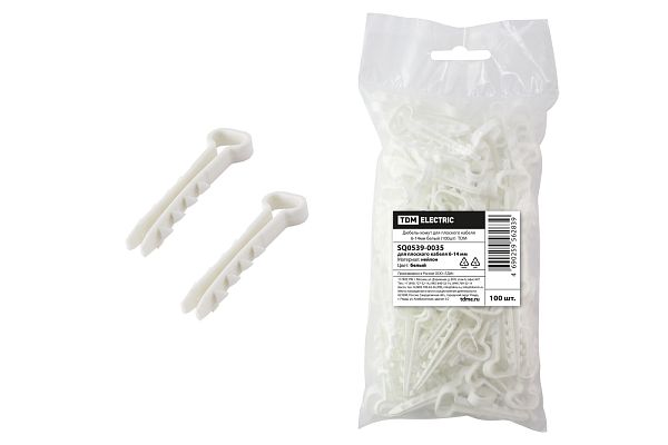 Электротехническая инфраструктура на объекте может иметь разную конфигурацию, в том числе довольно сложную со множеством подключенных потребителей, однако строгие требования к безопасности неизменны. Они прописаны в отраслевых стандартах и другой нормативной документации. И зависит итоговый результат непосредственно от качества электромонтажа и используемых комплектующих. Дюбель-хомут для плоского кабеля 6-14мм белый (100шт) TDM (SQ0539-0035) — небольшая, но очень важная деталь, которая тоже отвечает за корректную работу оборудования. Устанавливается довольно просто, но с эксплуатационными нагрузками при этом справляется на отлично. Качество гарантировано многоступенчатым контролем на заводе TDM. При заказе уточните артикул SQ0539-0035 и количество позиций.