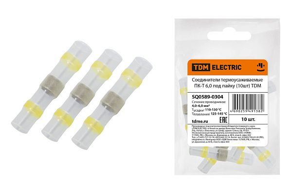 Электротехническая инфраструктура на объекте может иметь разную конфигурацию, в том числе довольно сложную со множеством подключенных потребителей, однако строгие требования к безопасности неизменны. Они прописаны в отраслевых стандартах и другой нормативной документации. И зависит итоговый результат непосредственно от качества электромонтажа и используемых комплектующих. Соединители термоусаживаемые ПК-Т 6,0 под пайку (10шт) TDM (SQ0589-0304) — небольшая, но очень важная деталь, которая тоже отвечает за корректную работу оборудования. Устанавливается довольно просто, но с эксплуатационными нагрузками при этом справляется на отлично. Качество гарантировано многоступенчатым контролем на заводе TDM. При заказе уточните артикул SQ0589-0304 и количество позиций.