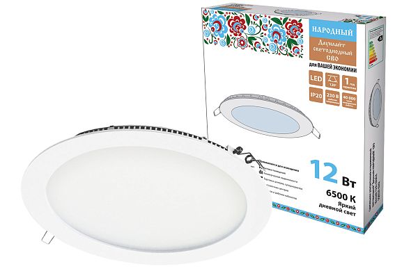 К светотехнике на любом объекте, будь то жилое помещение или коммерческая площадка, предъявляют высокие требования. Необходимо не только продумать конфигурацию всех приборов, безопасную схему подключения, суммарную мощность и нагрузку на сеть, но и учесть требования дизайна, поскольку эстетике сегодня уделяется большое внимание. Светильник ультратонкий встраиваемый светодиодный "Даунлайт НАРОДНЫЙ" СВО (белый) 12 Вт 6500К TDM (SQ0329-0242) — современное решение, в котором учтены все требования. За надежность отвечают материалы с большим запасом прочности. Все элементы конструкции без проблем выдерживают интенсивную эксплуатацию. Такой вдумчивый подход к деталям является визитной карточкой бренда TDM.