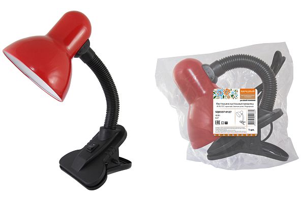 К светотехнике на любом объекте, будь то жилое помещение или коммерческая площадка, предъявляют высокие требования. Необходимо не только продумать конфигурацию всех приборов, безопасную схему подключения, суммарную мощность и нагрузку на сеть, но и учесть требования дизайна, поскольку эстетике сегодня уделяется большое внимание. Светильник настольный прищепка 40Вт, E27, красный, (мягкая упак.) Народный TDM (SQ0337-0127) — современное решение, в котором учтены все требования. За надежность отвечают материалы с большим запасом прочности. Все элементы конструкции без проблем выдерживают интенсивную эксплуатацию. Такой вдумчивый подход к деталям является визитной карточкой бренда TDM.