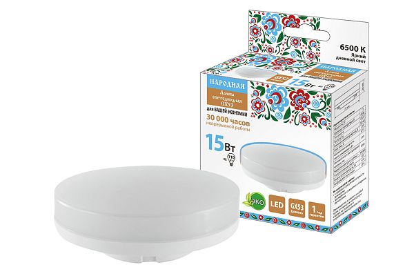 К светотехнике на любом объекте, будь то жилое помещение или коммерческая площадка, предъявляют высокие требования. Необходимо не только продумать конфигурацию всех приборов, безопасную схему подключения, суммарную мощность и нагрузку на сеть, но и учесть требования дизайна, поскольку эстетике сегодня уделяется большое внимание. Лампа светодиодная GX53-15 Вт-230 В-6500 К-Э, h=26 мм, Народная TDM (SQ0340-1576) — современное решение, в котором учтены все требования. За надежность отвечают материалы с большим запасом прочности. Все элементы конструкции без проблем выдерживают интенсивную эксплуатацию. Такой вдумчивый подход к деталям является визитной карточкой бренда TDM.