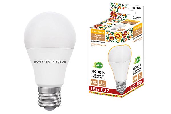 К светотехнике на любом объекте, будь то жилое помещение или коммерческая площадка, предъявляют высокие требования. Необходимо не только продумать конфигурацию всех приборов, безопасную схему подключения, суммарную мощность и нагрузку на сеть, но и учесть требования дизайна, поскольку эстетике сегодня уделяется большое внимание. Лампа светодиодная НЛ-LED230-A65-18 Вт-230 В-4000 К-Е27, (65х128 мм), Народная TDM (SQ0340-1636) — современное решение, в котором учтены все требования. За надежность отвечают материалы с большим запасом прочности. Все элементы конструкции без проблем выдерживают интенсивную эксплуатацию. Такой вдумчивый подход к деталям является визитной карточкой бренда TDM.